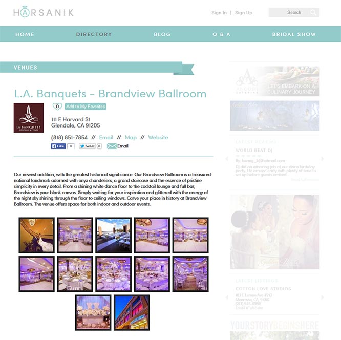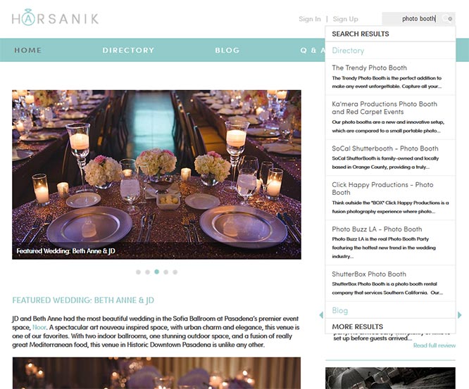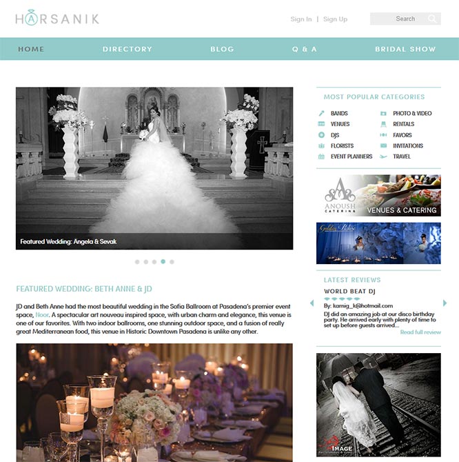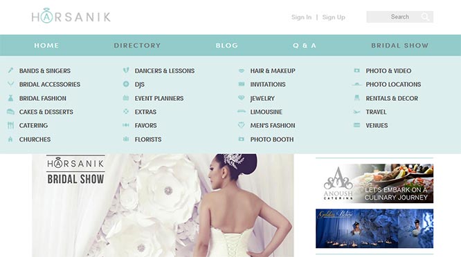 As we mentioned above, Harsanik's new layout and gorgeous design can now be accessed on your tablet and smartphone. In addition to the constant access to articles, wedding guides, and bridal stories, you can now even plan your wedding on the go. Find and call vendors while you're out and about, add or remove vendors as you meet with them...the possibilities are endless. Create an account with us, and you can access your favorites from any device.