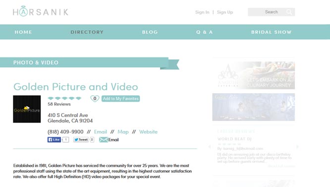 For vendors who choose to sign up for an upgraded listing, you can now upload up to 24 photos and 3 videos to your listing pages! This email address is being protected from spambots. You need JavaScript enabled to view it. and get your photo gallery added or updated on Harsanik.