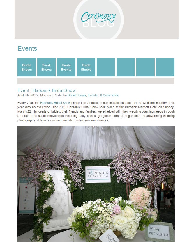 We are so excited to have the Harsanik Bridal Show be featured by two of our favorite wedding magazines, Modern Luxury Brides and Ceremony Magazine.