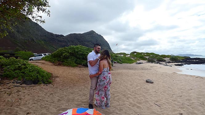 A relaxing mother daughter trip to Hawaii turned into a super romantic proposal! We recently caught up with Nicole and Hakob to find out more about their proposal story and all the details of how Hakob planned this special surprise. From coordinating with his future mother-in-law, to fake calendar invites to throw off Nicole, Nicole and Hakob share their love story and all the details before, during, and immediately after their Hawaiian proposal in Oahu.