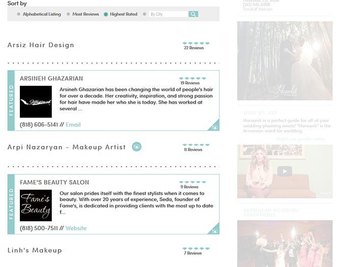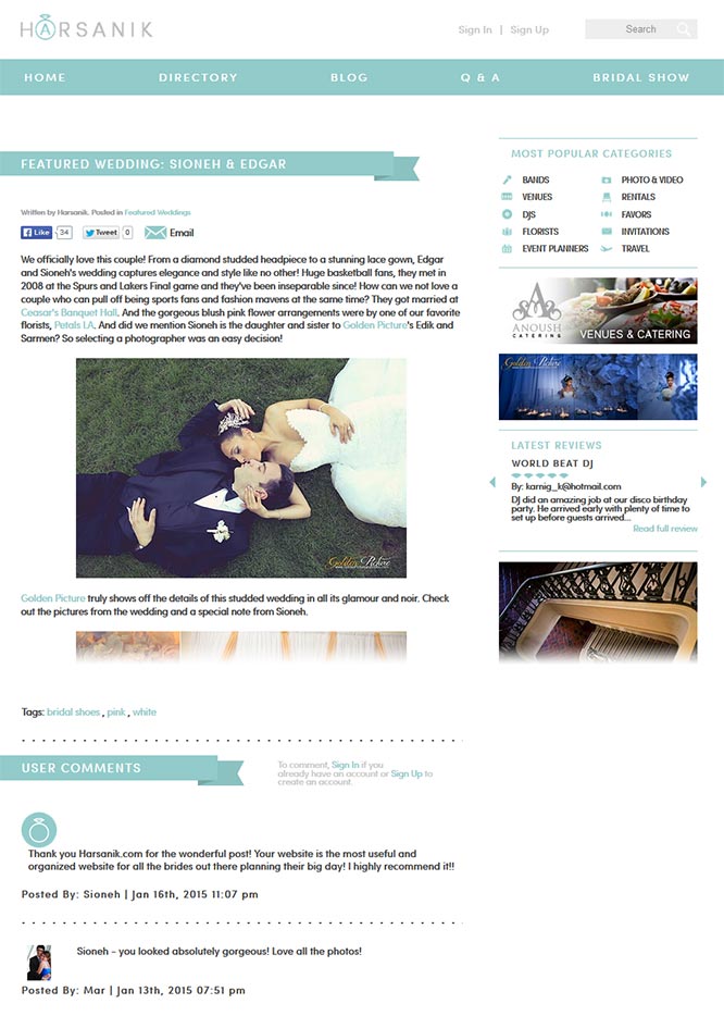 As we mentioned above, Harsanik's new layout and gorgeous design can now be accessed on your tablet and smartphone. In addition to the constant access to articles, wedding guides, and bridal stories, you can now even plan your wedding on the go. Find and call vendors while you're out and about, add or remove vendors as you meet with them...the possibilities are endless. Create an account with us, and you can access your favorites from any device.