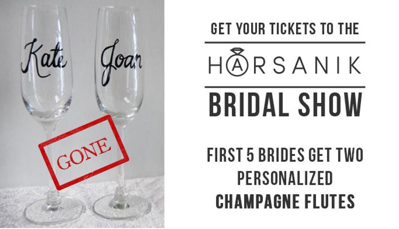 Tickets to the 2015 Harsanik Bridal Show are now on sale! Our upscale bridal event is scheduled for Sunday March 22, and we are so excited that it's only two months away. In our last blog post, we promised special gifts and beautiful showcases. Finally, we can start to share some of the details!